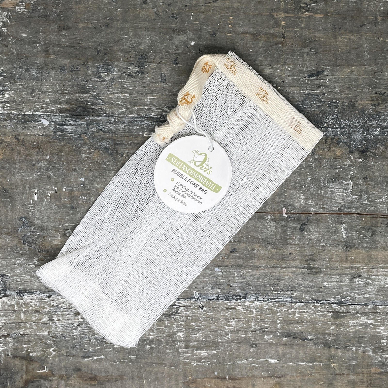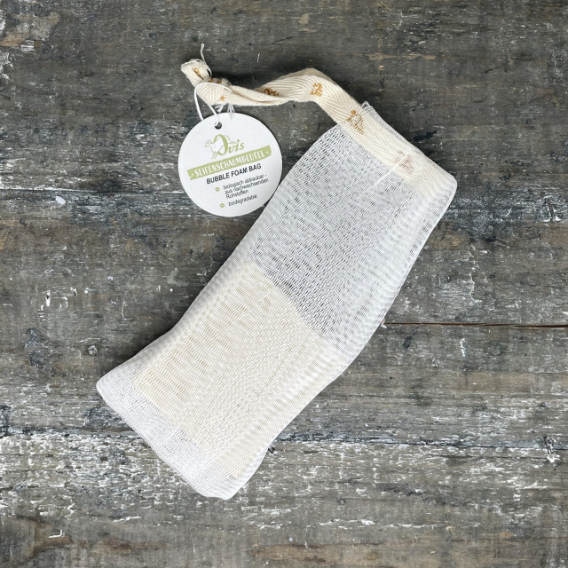 Das Seifensäckchen von Ovis ist der perfekte Begleiter für handgemachte Seifen. Hergestellt aus robustem, natürlichem Material, sorgt es dafür, dass Seifen optimal aufschäumen, länger halten und vollständig aufgebraucht werden können – sogar kleine Seifenreste finden darin ihren Platz. Durch die leicht strukturierte Oberfläche wirkt das Säckchen wie ein sanftes Peeling, das abgestorbene Hautschüppchen löst und die Haut angenehm glatt hinterlässt. Einfach Seife hineingeben, anfeuchten und loswaschen – schon entsteht cremiger, reichhaltiger Schaum.